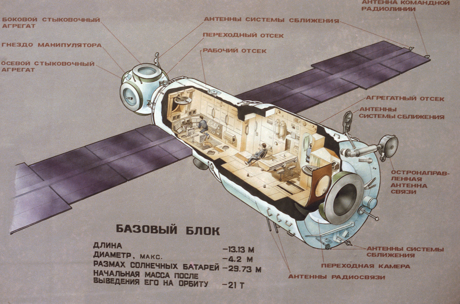 19 февраля 1986 года, в 21 час 28 минут UTC, с космодрома Байконур была запущена орбитальная станция «Мир». Она приходила на смену станции «Салют-7» и имела ряд улучшений. Базовый блок и модуль «Мира» был разработан в Государственном космическом научно-производственном центре имени Хруничева, тогда как техническое задание подготовила ракетно-космическая корпорация «Энергия». При проектировании особое внимание уделялось доступности ремонта систем станции. Ее достраивали уже после ввода в эксплуатацию. Так, последний модуль был присоединен к ней только в 1996 году.