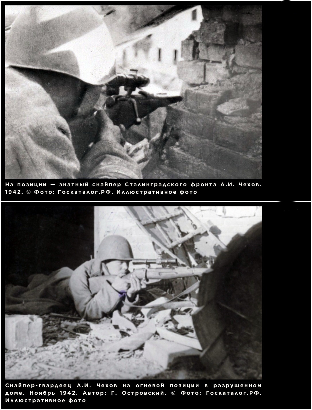Гроссман, побывав на позиции Чехова на пятом этаже разбитого здания, лично видел его работу. Его поразил эффект, который давали точные выстрелы парня: