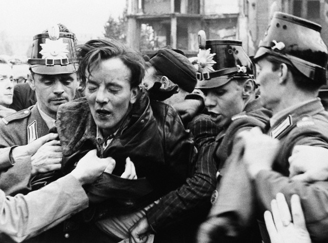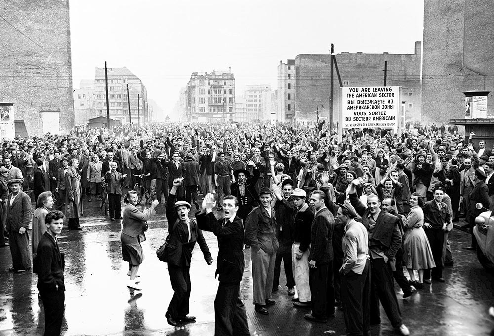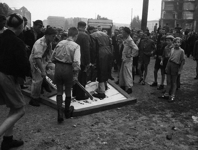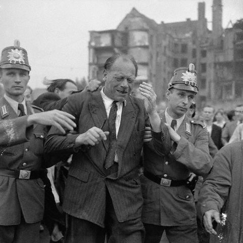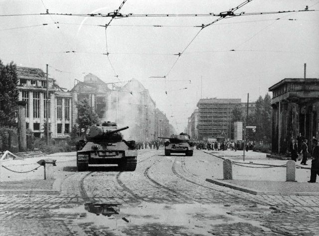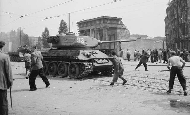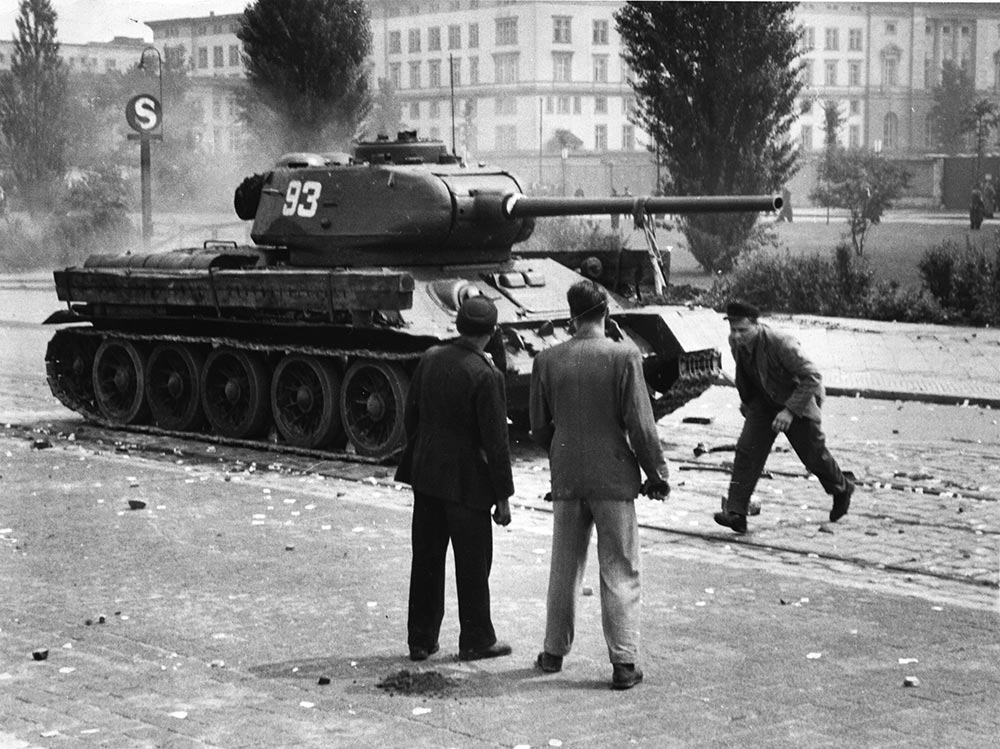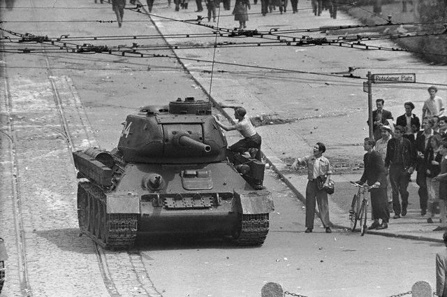 Утром 17 июня на площади Штраусбергер собрались на митинг уже около десяти тысяч человек. Лозунгами манифестантов были: «Долой правительство! Долой Народную Полицию!» «Мы не хотим быть рабами, мы хотим быть свободными!» Толпа начала крушить полицейские участки, здания партийных и государственных органов, жечь киоски с коммунистическими газетами, уничтожать символы коммунистической власти. Так началось знаменитое Берлинское восстание 1953 г.