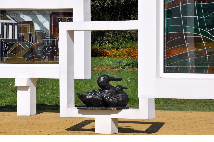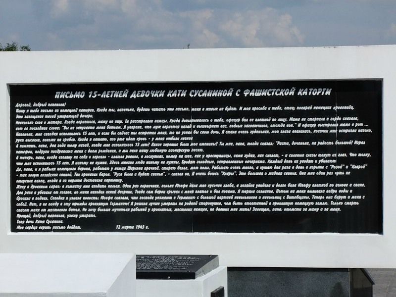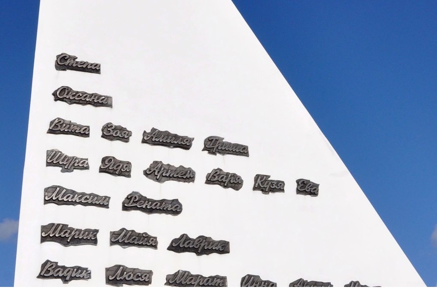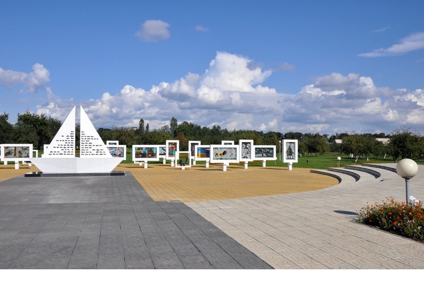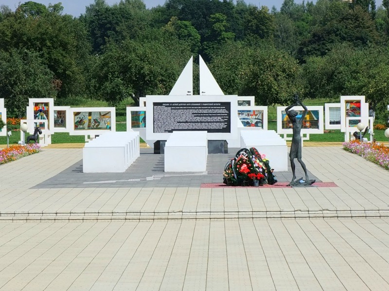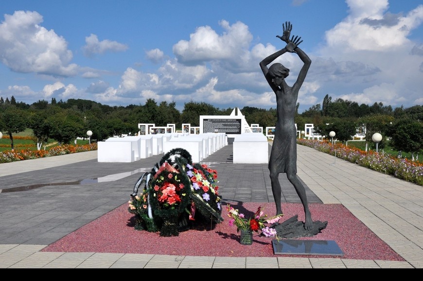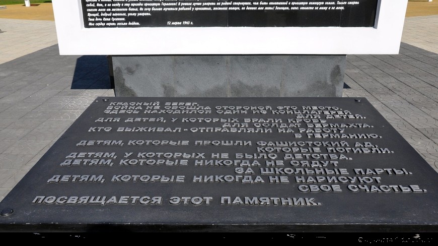 Мемориал погибшим детям, аналогов которому нет в мире – стал второй Хатынью в Беларуси. Кораблик с именами погибших малышей, мертвый класс из белого бетона, болезненная тишина и ни одного конкретного упоминания о страшном событии. Три ряда – три года оккупации Рогачева, 7 парт в каждом – 7 тысяч школ было разрушено в Беларуси в годы войны.