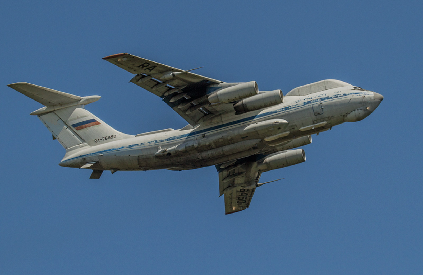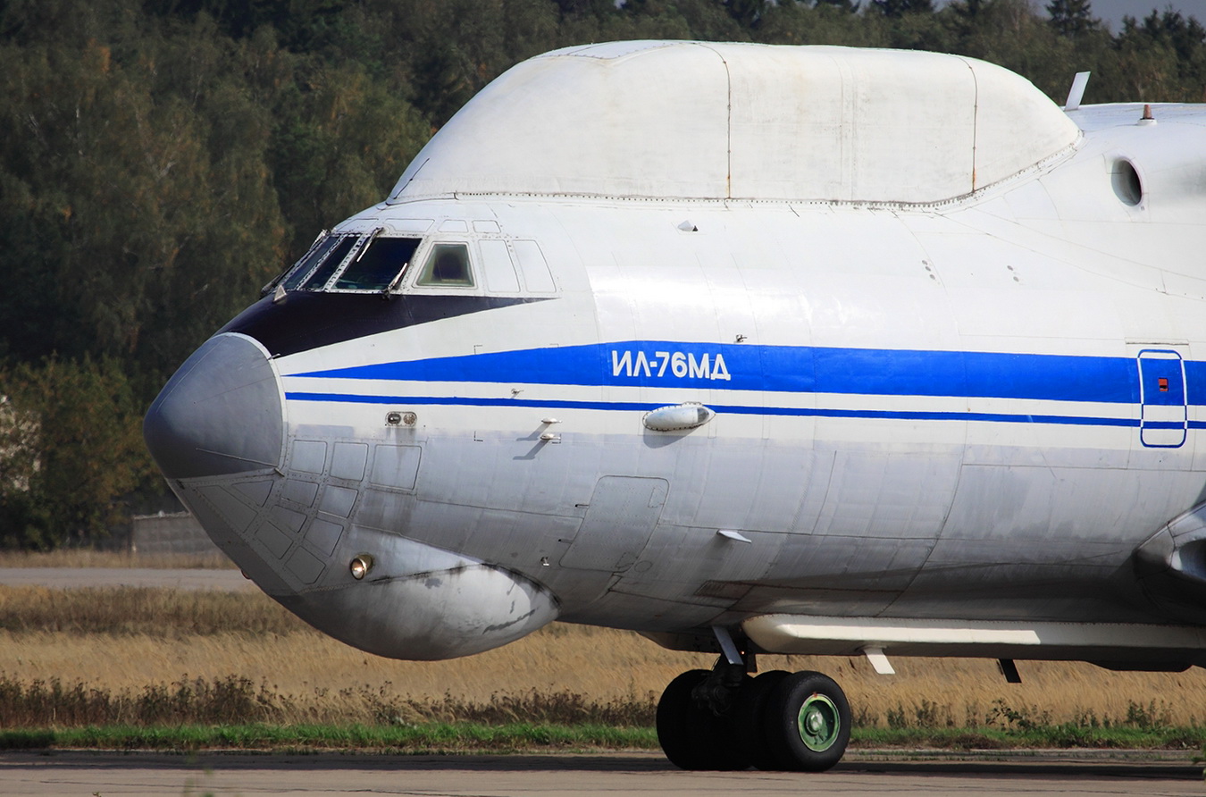 Внешность Ил-76ВКП очень характерная - их ни с чем не спутаешь. Весь верх носовой части фюзеляжа от пилотской кабины до центроплана занимает здоровенная коробчатая надстройка с аппаратурой спутниковой связи, как на Ил-86ВКП.