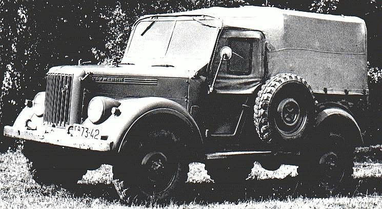 21 апреля 1947 года вышло Постановление Совета министров СССР №1118-325, а затем и Приказ №34 Министерства автомобильной и тракторной промышленности, официально предписывающие Горьковскому автозаводу начать работы по созданию нового вездехода. 30 июня того же года и основной заказчик – Главное артиллерийское управление РККА – выдал тактико-технические требования на автомобиль (у военных он обозначался как АТК-Л – «артиллерийский тягач колесный легкий»). Согласно требований ГАУ, легкий автомобиль-тягач должен был быть способен буксировать прицепы (батальонные артсистемы) весом до 800 кг, а также предназначался для перевозки боеприпасов, крупнокалиберных пулеметов, 82-мм минометов и их боевых расчетов. Без прицепа автомобиль планировалось использовать в качестве командирской машины, машины связи, разведки.