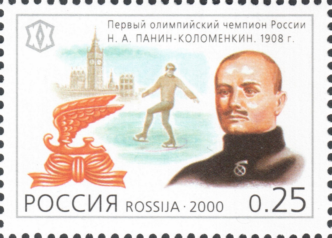 Первым русским олимпийским чемпионом стал фигурист Николай Панин, выигравший золотую медаль на Олимпийских играх в Лондоне в 1908 году. Это был пятикратный чемпион России по фигурному катанию, 23-кратный чемпион России по стрельбе. Настоящая фамилия спортсмена — Коломенкин. Николай Александрович Коломенкин родился в 1872 году в Воронежской губернии, обучался на отделении естественных наук физико-математического факультета Санкт-Петербургского университета, затем поступил на правительственную службу в Петербургской казенной палате. В Петербурге он активно посещал спортивный кружок «Яхт-клуб» и занимался коньками и стрельбой. В спорте Николай Коломенкин взял псевдоним — Николай Панин, в 1897 году он стал победителем чемпионата «Петербургского кружка любителей спорта» по бегу на коньках с фигурами. Главным девизом Панина было изречение: «Спокойствие прежде всего». Его первоначальная спортивная специализация — соревнование в «специальных фигурах» (фигурное катание) — впервые была включена в программу летних Игр IV Олимпиады в Лондоне в 1908 году. Российскую империю в этом виде спорта представлял Николай Панин. Заданием этого вида спорта на олимпийских играх было филигранное вычерчивание на льду рисунка специальных фигур, который участники заранее вычерчивали на бумаге и утверждали у судей. Панинские фигуры потрясли всех сложностью и судьи с особым пристрастием следили за правильностью их выполнения во время выступления спортсмена. Придраться было не к чему. Судьи единогласно присудили Панину первое место. Европейские газеты выдали ему титул — «русский самородок». Дома в России ждали Панина неприятности. Стало известно, что финансовый инспектор по Царскосельскому уезду Николай Коломенкин, — это и есть олимпийский чемпион Николай Панин. Начальство обвинило Коломенкина в нарушении служебной дисциплины, так как по инструкции чиновникам запрещалось участие в публичных спортивных соревнованиях. Ему пригрозили ссылкой в Сибирь. Олимпийский чемпион перестал посещать любимый спортивный кружок «Яхт-клуб» и на льду больше не выступал. В 1910 году он опубликовал первый в мире учебник по фигурному катанию, и Международный союз конькобежцев (ИСУ) признал книгу в качестве официального учебника и наградил автора золотой медалью.