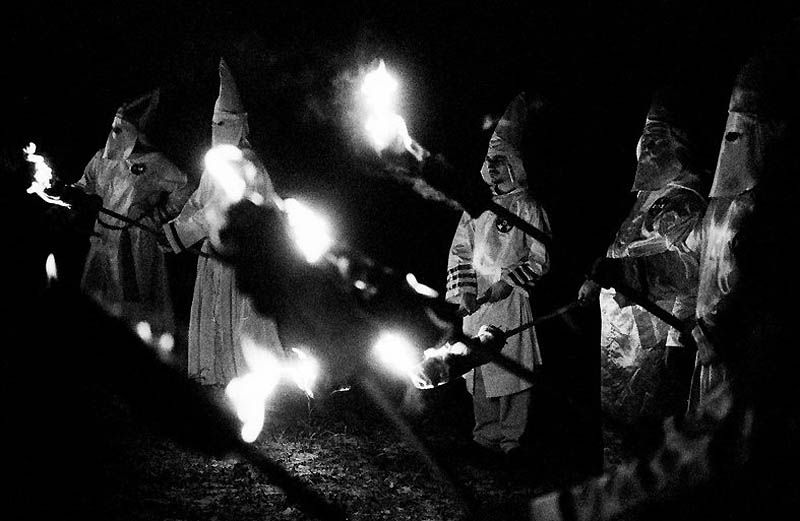 Это внушающее страх тайное общество было учреждено бывшими солдатами-южанами после Гражданской войны (1861-65). Преступлениям членов ку-клукс-клана обычно предшествовало предупреждение, посланное в причудливой, но широко известной форме. В некоторых частях страны это была ветка дубовых листьев, в других — семена дыни или зёрнышки апельсина. Получив такое предупреждение, жертва могла либо отречься от своих прежних взглядов, либо покинуть страну. Если человек игнорировал предупреждение, его ждала верная смерть. Первый ку-клукс-клан процветал в 1860-х гг. на Юге США, но уже в начале 1870-х движение перестало существовать. Тогда же появились знаменитые белые костюмы, состоявшие из мантии, маски и конического головного убора, созданные специально для устрашения . Второй ку-клукс-клан был распространён на всей территории страны в начале и середине 1920-х. Он использовал те же костюмы и пароли, но ввёл новый символ — горящий крест. Третий ку-клукс-клан возник после Второй Мировой войны как реакция на движение за гражданские права меньшинств. Второй и третий ку-клукс-кланы выступали за придание особых прав потомкам первых граждан США, победивших в Войне за независимость. Все три организации имеют богатый послужной список террористических актов, хотя историки сомневаются в том, насколько широко руководство второго ку-клукс-клана поддерживало эту практику.