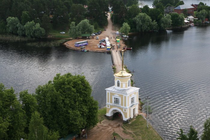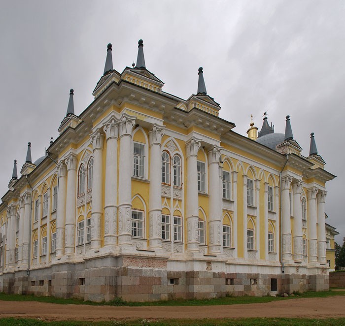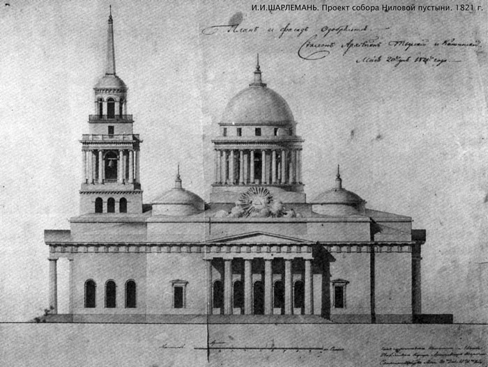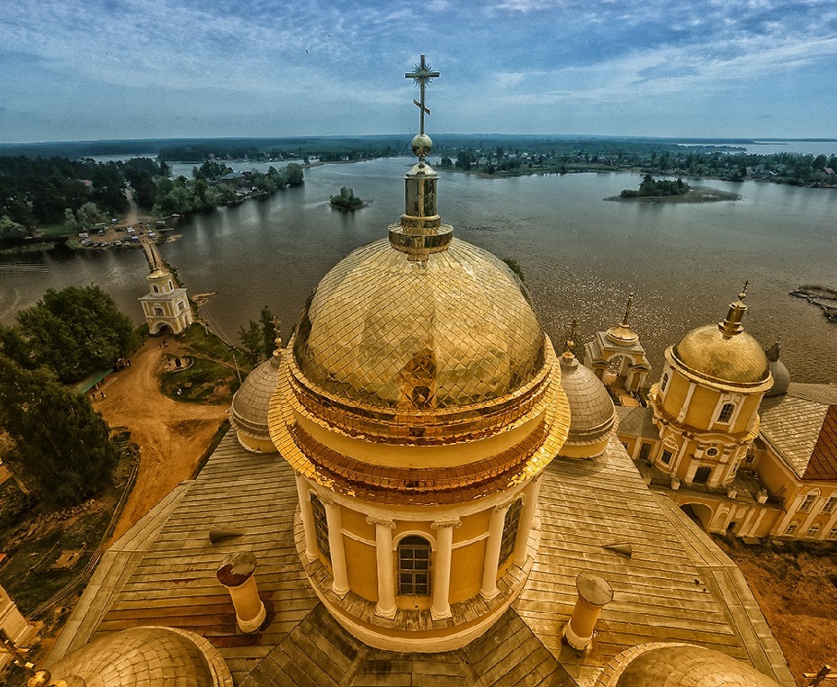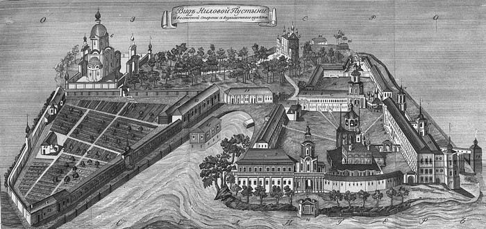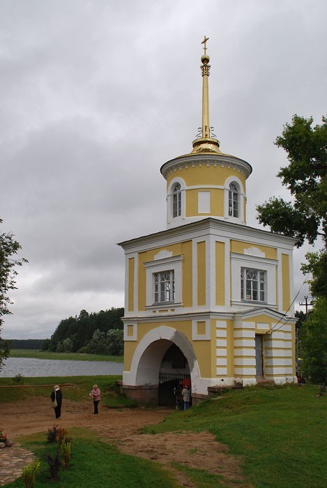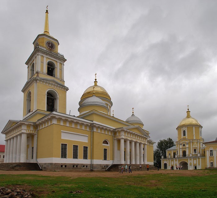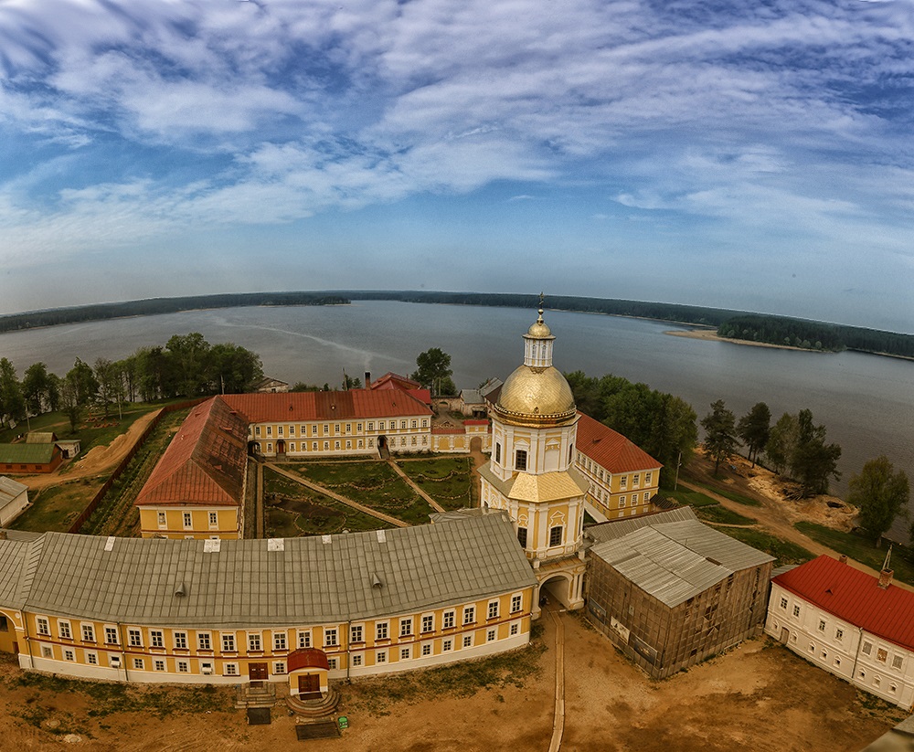 Нило-Столобенская пустынь была основана на Столобном острове, который давно уже ошибочно называют "Столбным", хотя при чем тут столб. Первым здесь поселился монах из Крыпецкого монастыря на Псковщине, преподобный Нил. Нил, судя по его житию, практически всю сознательную жизнь провел в монастыре и отличался в нем особо подвижнической жизнью. Когда его попытались начать за это почитать, Нил с позволения игумена сбежал от людей куда подальше, в район Ржева, в глушь, где около тринадцати лет провел отшельником, не ложился никогда и даже не спал. Наконец ему было видение, в котором он получил указание идти на остров Столобный, "чтобы спастись". Он и пошел. Долго искал, где же находится этот остров, и нашел его. Тогда на острове была целая каменная гора, в пещере которой Нил и поселился, потом выстроил себе маленькую келью и часовню. Кто-то из местных жителей его почитал и помогал ему, кто-то наоборот, ненавидел. Все как обычно у святых и отшельников, непохожих на других. Собственно, Нил Столобенский не был основателем монастыря в прямом смысле слова. Он жил здесь один, и только после его смерти (1555 год), и то не сразу, сюда пришли другие монахи - тогда-то и появился монастырь. Основателем пустыни стал монах из находившегося неподалеку Николо-Рожковского монастыря, Герман. Это было в 1595 году. При нем построили первые деревянные храмы и кельи благодаря опеке князей Московских, он получал богатые вклады и даже целый остров - загадочную Городомлю. Монастырь славился множеством чудес и исцелений. Благодаря богатым жертвователям и постоянному потоку паломников, монастырь начал обстраиваться в камне. Увы, от каменных построек почти ничего не осталось - вся обитель была разорена и сожжена в Смутное время (и занесло же сюда поляков). Впрочем, после Смуты его быстро отстроили, хотя бы в дереве - у монастыря и своих средств было немало, и богатых вкладчиков хватало. Среди них были и царские особы, и бояре Милославские, и князья Пожарские, громких фамилий - огромный список. На какое-то время монастырь отчего-то заглох и даже стал заштатным. Но к XVIII веку все изменилось. Пустынь превратилась в одну из самых известных и почитаемых обителей, куда снова потянулись паломники - и среди них, конечно же, высокие гости. Новые постройки относятся уже к концу XVIII и к XIX векам. Грандиозный ансамбль существующих зданий сложился к середине XIX века и выглядит по-столичному представительно. Внутри квадратного двора, образованного протяженными корпусами калий, стоит большой собор с колокольней, увенчанной шпилем. Восточный фасад обители, выходящий к воде, оформлен гранитной террасой, набережной и Архиерейской пристанью, и от этого кажется, что Нилова пустынь - в буквальном смысле островок Петербурга. Нынешняя желто-белая покраска лишь усиливает эти ассоциации. Монастырь был закрыт в 1927 г., в нем располагались поочередно колония, госпиталь, турбаза. За это время утрачены Покровская церковь, стоявшая на месте пещеры преподобного Нила, и внутреннее убранство всех храмов. Монастырь вновь действует с 1995 г.