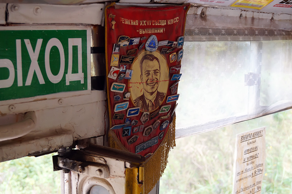 Впереди — четыре кресла от междугородника (похоже, Икаруса) для VIP-пассажиров