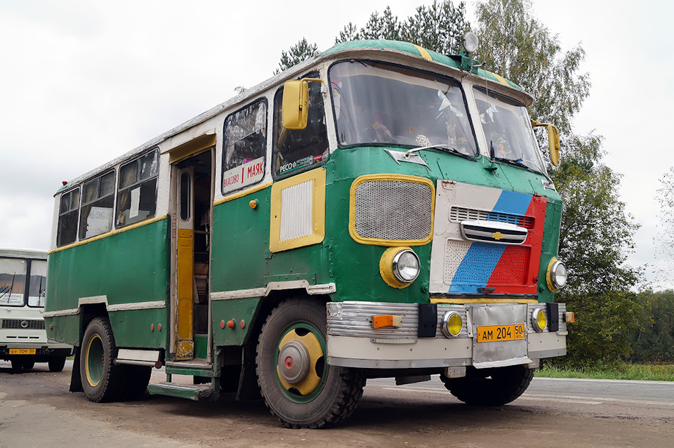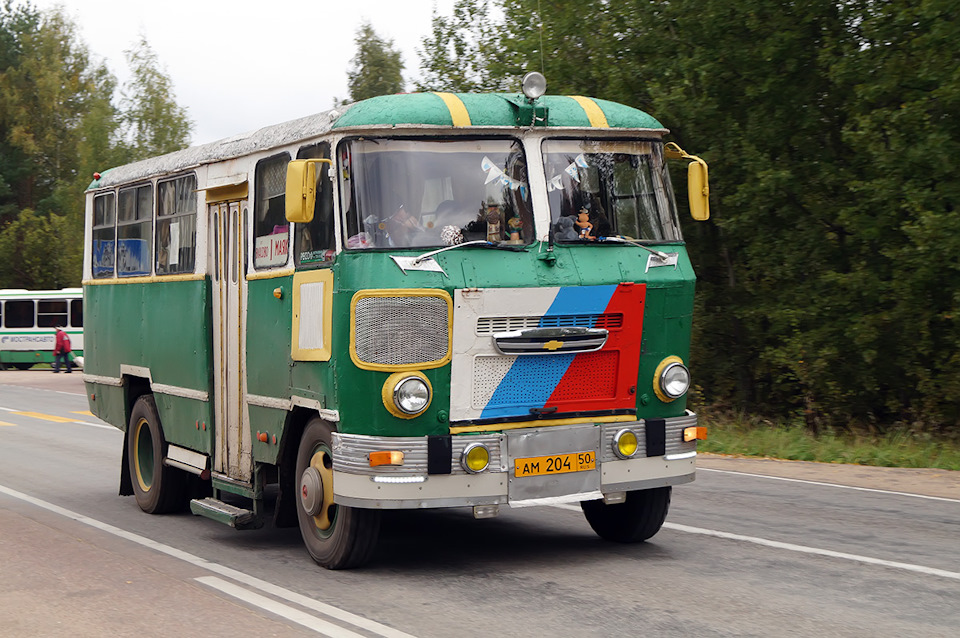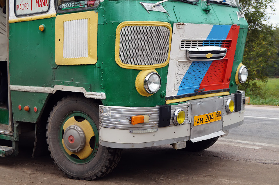 Передний бампер и ""горшки"" под фарами — от 677го ЛиАЗа. Поворотники — от позднего ИЖа. Решётка в морде и передняя ось — от ПАЗ-672, а ""крылья коммунизма"" от Запорожца на морде уступили место решётке от Запорожца посвежее поколением (= Конечно, машина нравится не всем. В последние годы контролирующие органы ведут натурально охоту за уникальной машиной — с большой вероятностью, единственной в России, работающей на маршруте. Однако, попытки поймать перевозчика на хоть каком-то косяке были обречены на провал: ныне "самопровозглашённый" маршрут работает по договору с правлением садоводства и со списком пассажиров.