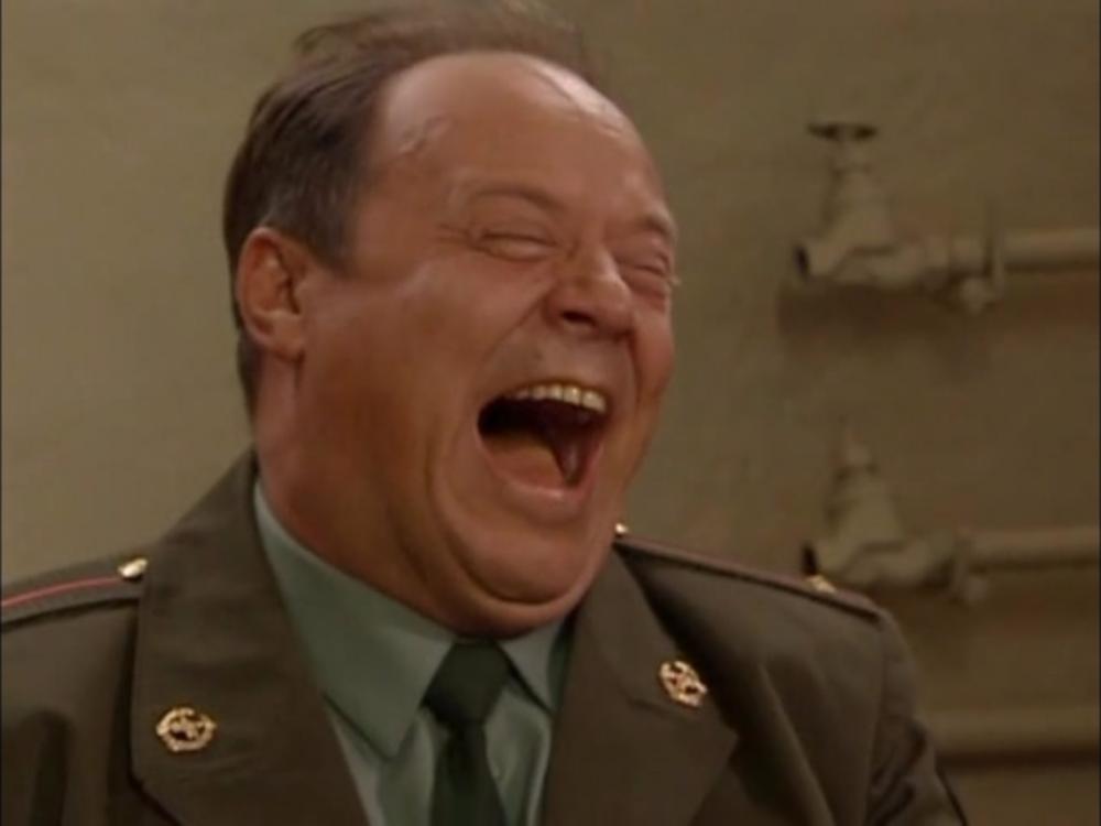 С заднего ряда - четкий ответ, прапорщика, проторчавшего целый день на стрельбах: