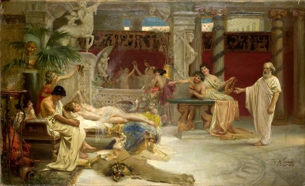 Еще одним любопытным способом отметить какое-то событие или просто пообщаться считались симпозиумы. Теперь ты будешь всегда внутренне улыбаться, когда всякие серьезные ученые говорят, что отправляются на симпозиум. Ибо у древних греков это слово означало знатную пьянку, когда все возлежали вокруг столов с вином и угощением. Гетеры, а также эскорт-девушки при этом тоже присутствовали, и можешь догадаться, чем дело заканчивалось.