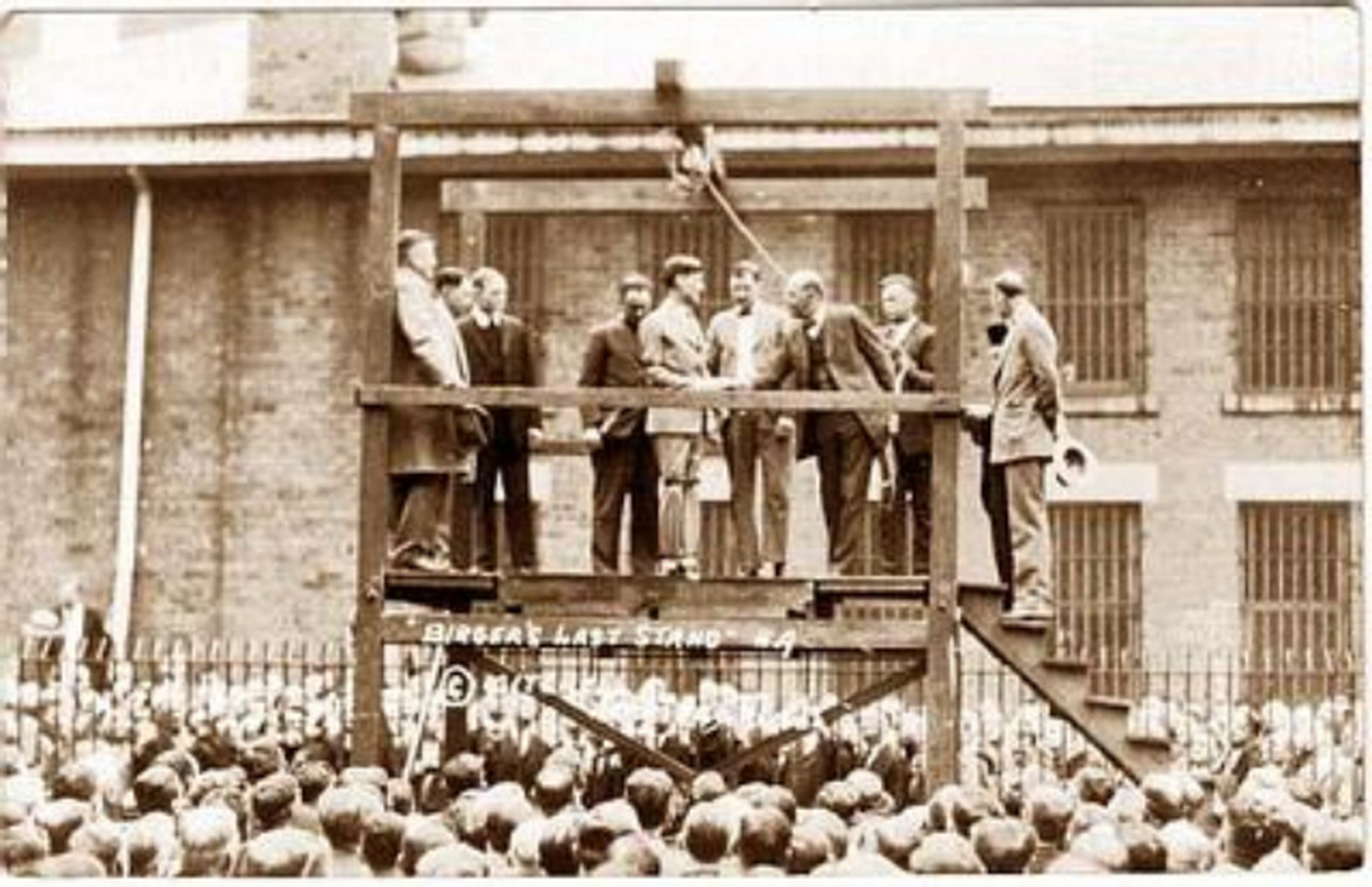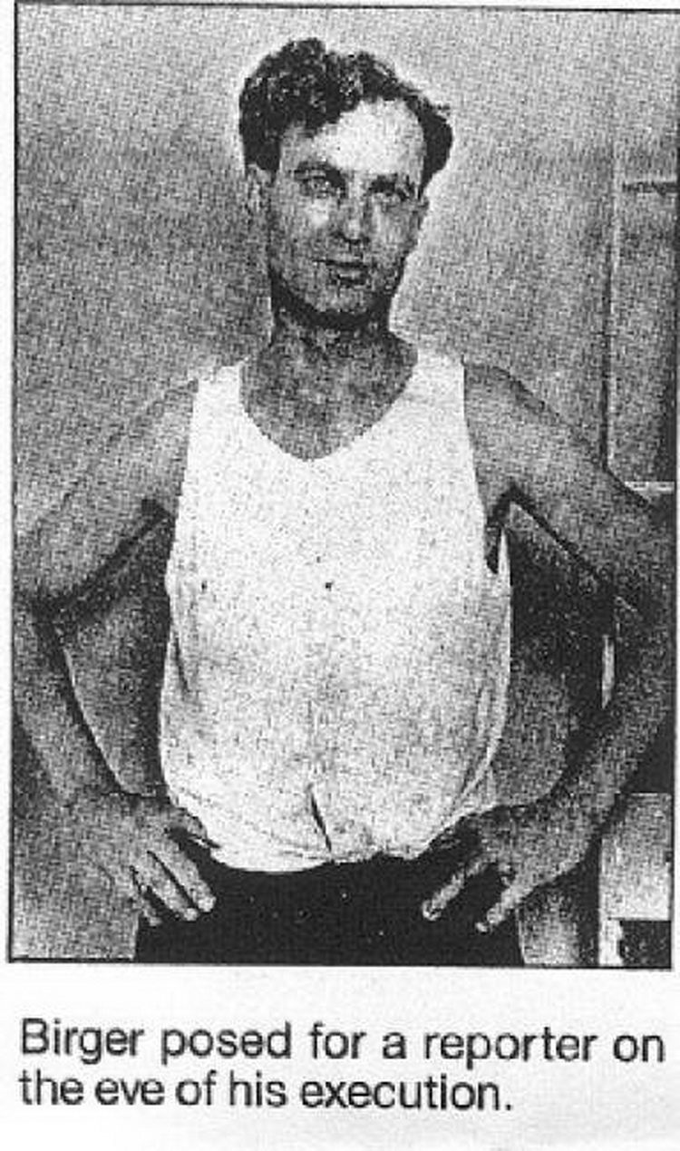 Как сообщали газеты, на повешение Биргера пришли пятьсот человек. «Прямой и невозмутимый, весьма учтивый, шёл Биргер навстречу своей смерти. Процессия, возглавляемая шерифом Притчардом, вышла из тюрьмы в 9.50 утра… [Биргер] шёл лёгкой походкой, останавливаясь, чтобы пожать руки нескольким человекам в толпе, пока шёл по проходу к виселице, находившейся в сотне футов (30 метров). Приговорённый поднялся на эшафот. Улыбаясь, он показал пальцем на какого-то человека в толпе и помахал ему рукой… Биргер кивнул и закрыл на мгновение глаза. На его голову быстро натянули мешок… Верный бандитскому кодексу чести, Биргер, умирая, не издал ни звука. «Прекрасный мир, - сказал он, стоя на эшафоте. – Я всех прощаю».