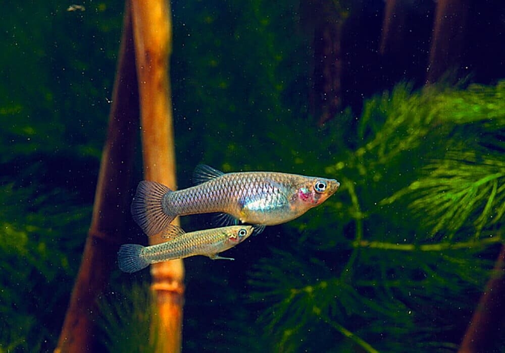 Гамбузии прекрасно переносят широчайший диапазон температур — от +43°С до 0°С. Они спокойно зимуют под слоем льда толщиной в несколько сантиметров! Мутная, грязная вода им тоже нипочем — рыбины прекрасно выживают в заболоченных озёрах со стоячей водой и кучей водорослей. Даже в соленой воде пресноводные рыбы чувствуют себя отлично: гамбузии переносят концентрацию до 7% — вдвое больше, чем в океане. И в таких условиях они будут не просто «выживать», а активно пожирать всю нечисть и плодиться в космических масштабах. Как только вода прогреется до +18°С, рыбины тут же примутся делать себе подобных. Зазря не рискуют: гамбузии прекрасно понимают, что раз они любят закусывать чужой икрой, то кто-нибудь другой обязательно закусит их собственной. Самки вынашивают икринки в себе чуть меньше месяца, после чего рожают сразу самостоятельных мальков. То есть гамбузия — живородящая рыба!
