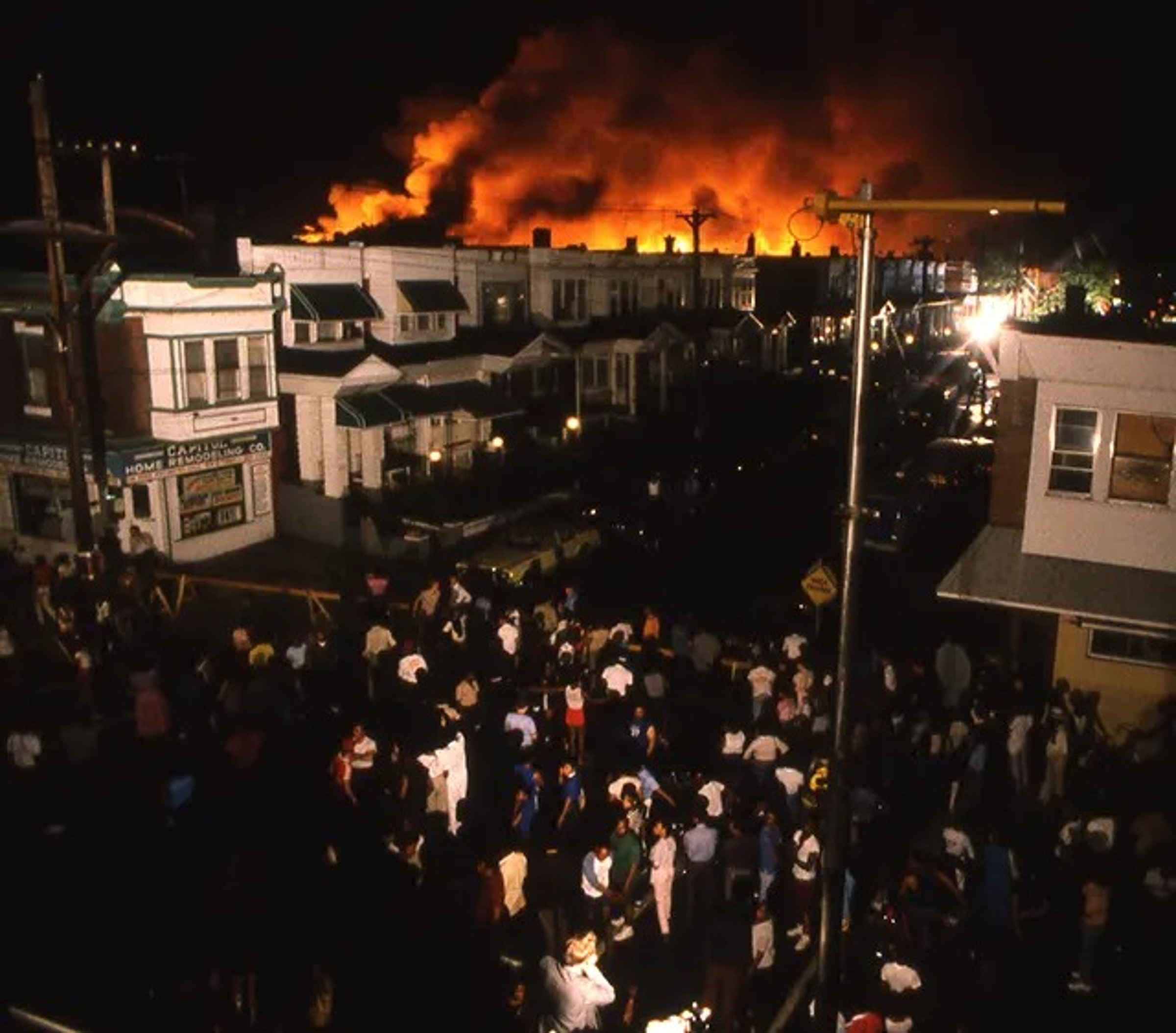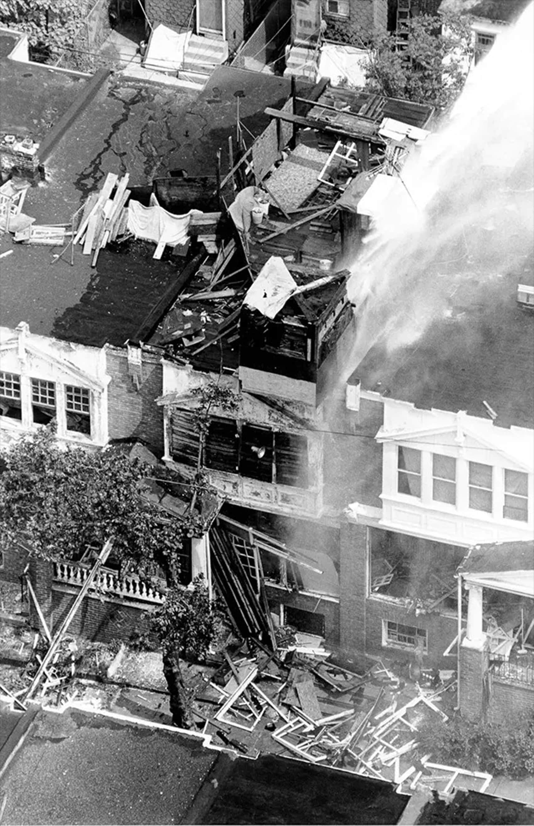 Взрыв уничтожил сооружение, но он также вызвал сильный пожар. Пожарным, боявшимся огня MOVE, был отдан приказ не вмешиваться.