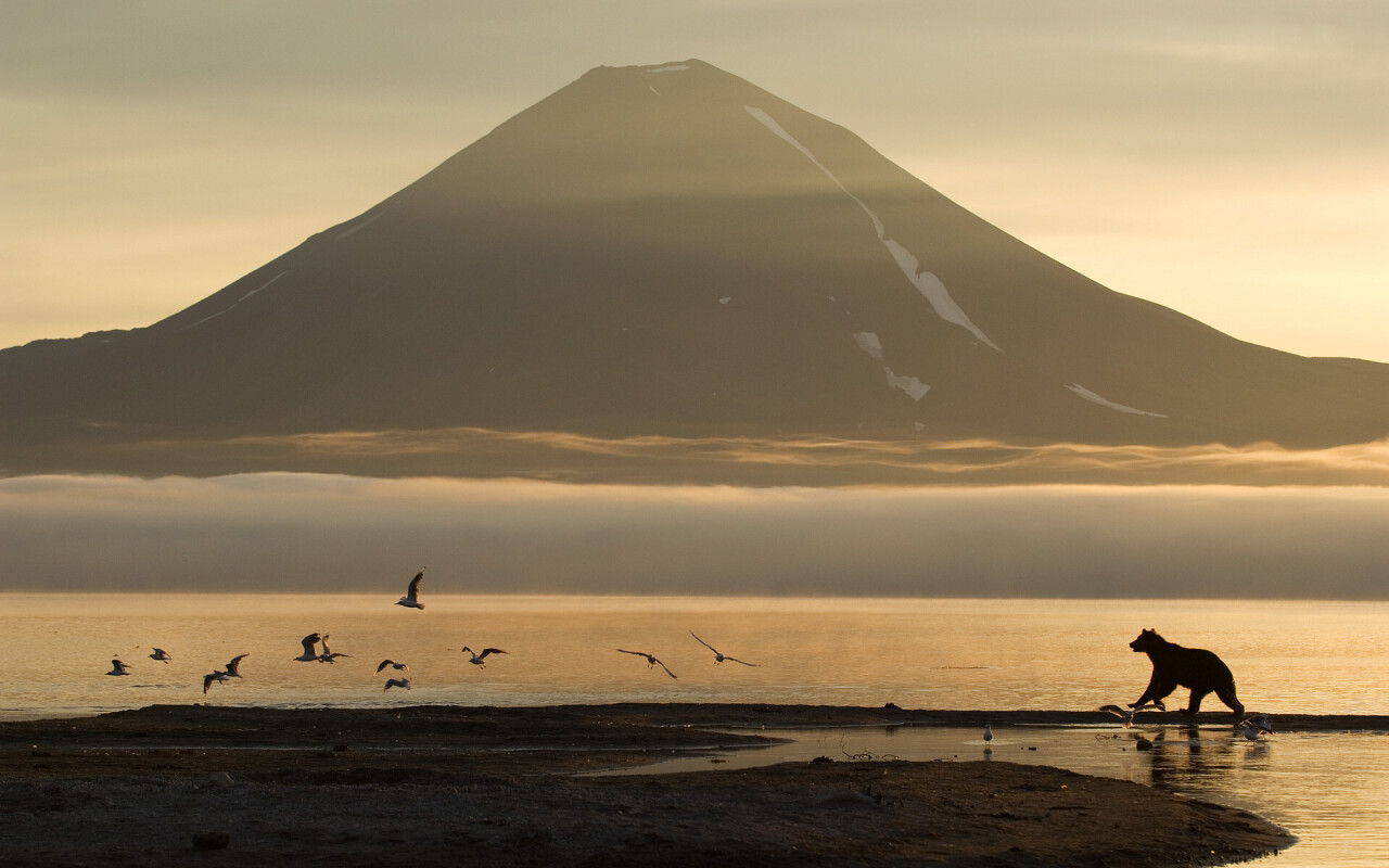 Обещание вулкану я выполнил. Даже целый год безвыездно прожил у его основания на берегу реки Кроноцкая, снимая его красоту каждый погожий день, когда он показывался из-за облаков или тумана. Только на первом плане у меня не люди и обжитые ландшафты, как у Хокусая, а нетронутая природа и дикие звери».