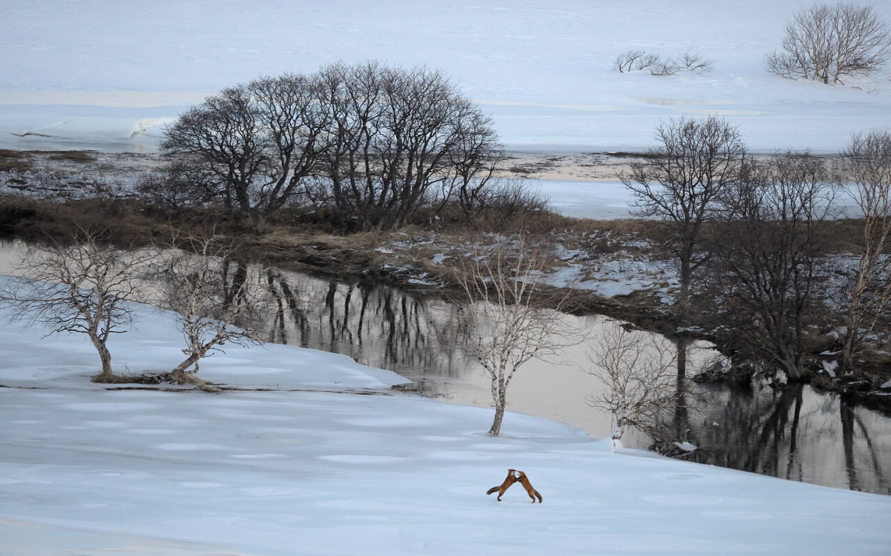 По просьбе читателей своего блога Игорь Шпиленок выкладывает некоторые снимки в большом разрешении, чтобы их можно было использовать как заставки для больших мониторов. Ещё он делится новостями о выставках и новых проектах в фейсбуке и в инстаграме. В альбоме ниже избранные снимки из заповедного путешествия Игоря Шпиленка, где запечатлелись такие сюжеты, как лисья свадьба, цветущий валежник, первобытный лес, весенний рассвет на Курильском озере и Кроноцкая Сопка, конечно же.