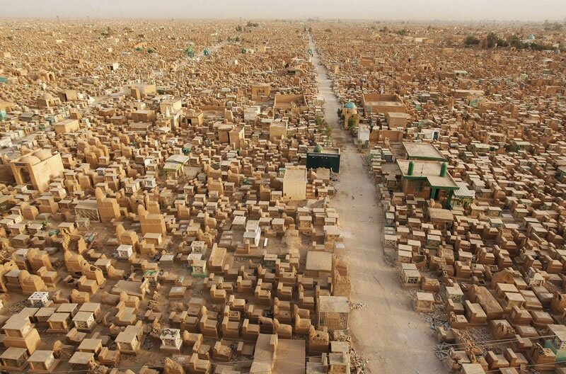 Во время войны в Ираке кладбище серьёзно пострадало — здесь часто укрывались местные боевики с миномётами.