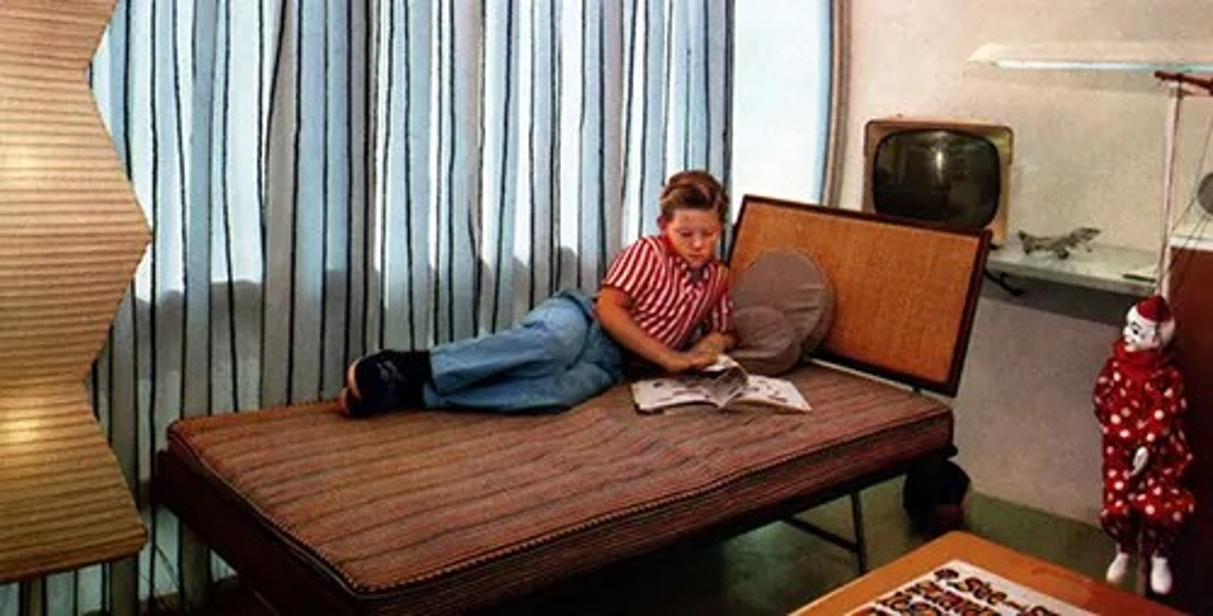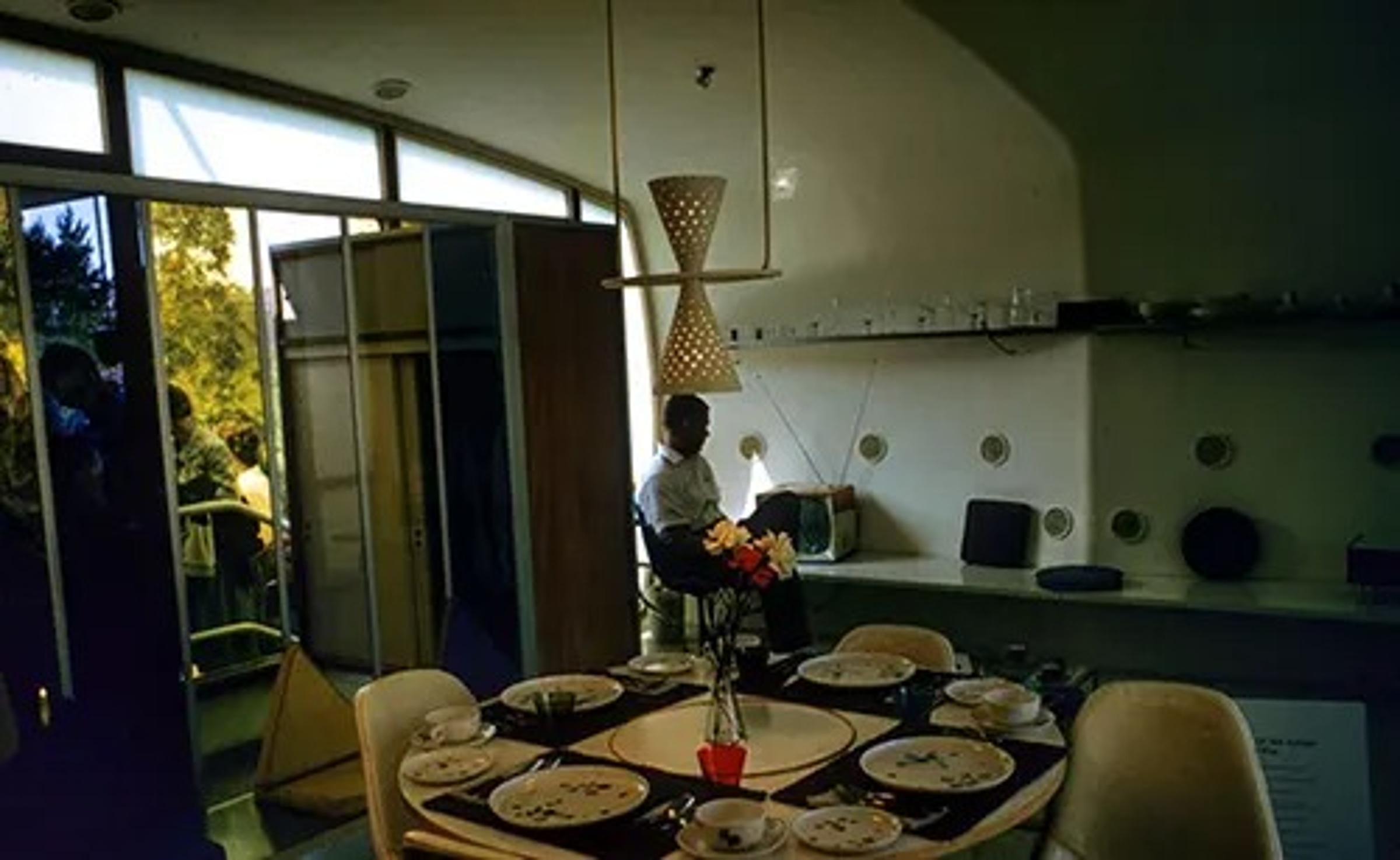 Главной темой экскурсии были современные удобства. На кухне многие посетители впервые видели микроволновку, а гостиная могла похвастать большим установленным на стене телевизором, дизайн которого был созвучен округлой форме современных [тогда] экранов кинескопов.