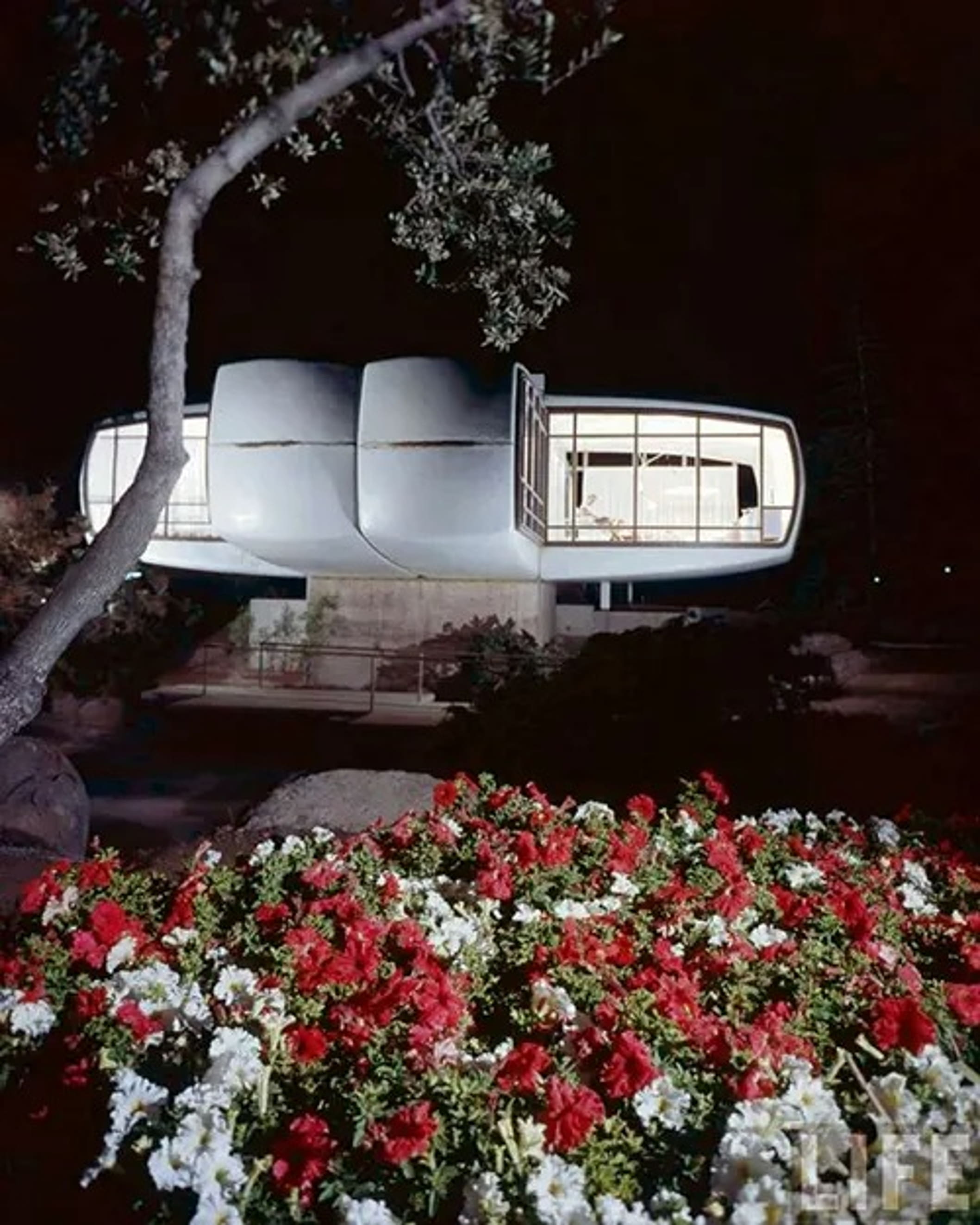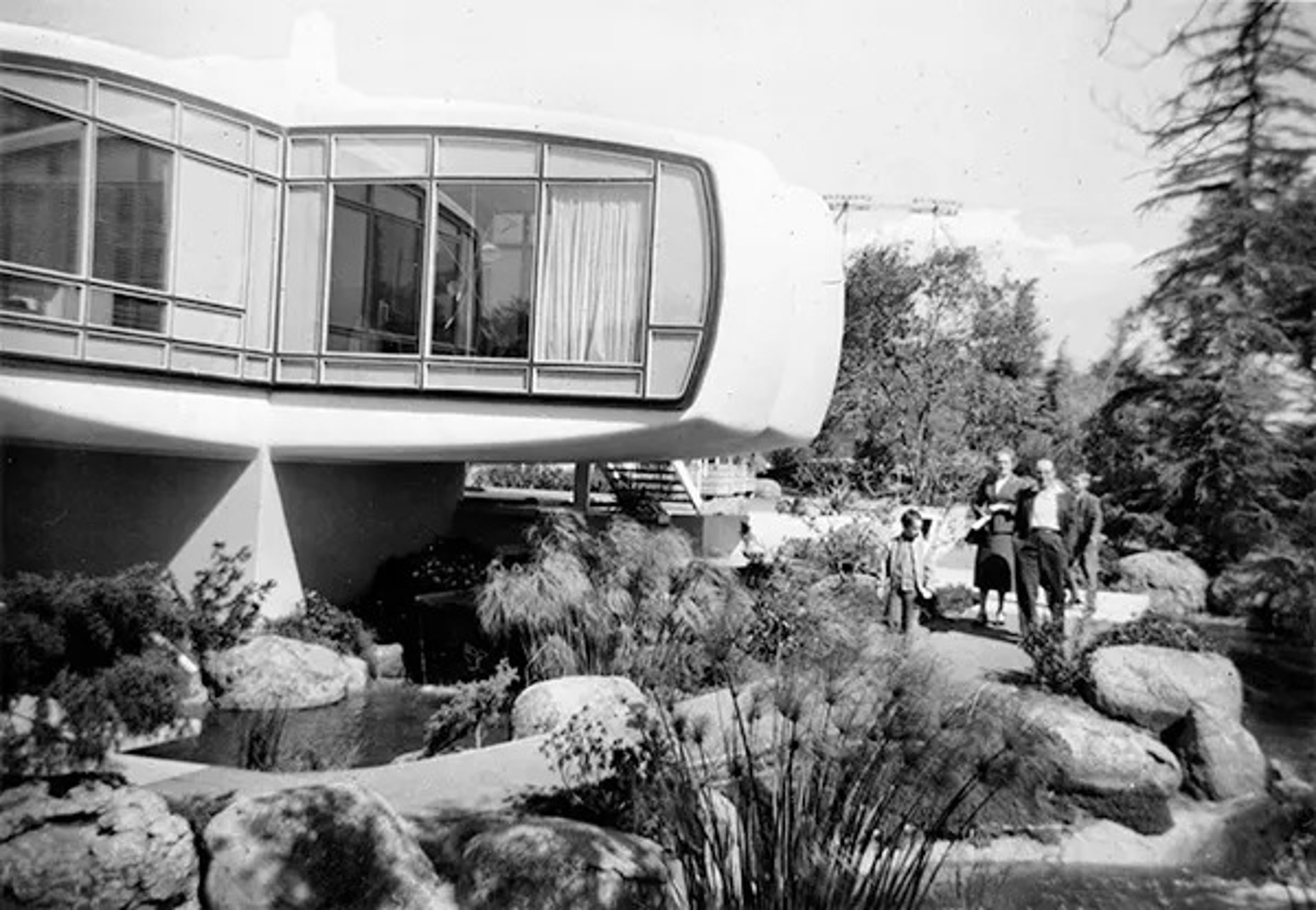 Четыре крыла-консоли, каждое из которых было способно выдержать до 13 тонн, придали дому парящий вид, несмотря на его замечательную прочность.