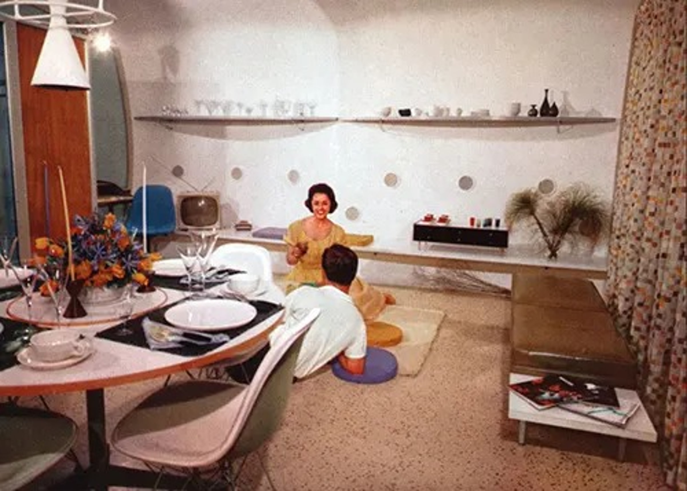 Более спокойная по тону, столовая отражала представление людей середины прошлого века об обычном общем пространстве, особенно для детей.