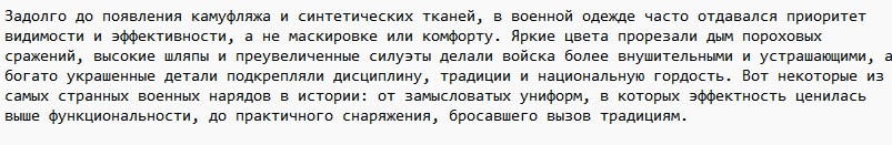 pokazuha.ru НЕ является открытым ресурсом. Копирование материалов запрещено. Разрешены ссылки на публикации. Ссылка: http://pokazuha.ru/view/topic.cfm?key_or=1568571 HTML: <a href="http://pokazuha.ru/view/topic.cfm?key_or=1568571">Самая странная военная мода в истории </a> ВВcode: [URL=http://pokazuha.ru/view/topic.cfm?key_or=1568571]Самая странная военная мода в истории [/URL] |