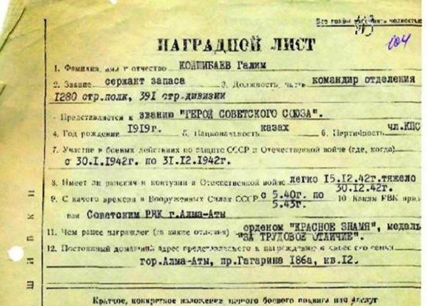 Имя Галима Койшибаева было занесено в "Золотой альбом" 391-й стрелковой дивизии и упоминается в известном письме комсомольцев 1-й Ударной армии молодёжи Казахстана. На имя отважного казаха, лично уничтожившего 126 фашистов (включая 6 снайперов), лично спасшего из окружения 30 тяжело раненных советских бойцов, лично подбившего 4 танка, а также выполнившего десятки других армейских заданий, командование дивизии подготовило представление на звание Героя Советского Союза. Но, по непонятным причинам, это ходатайство было "замолчано".