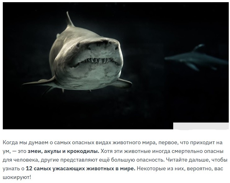 pokazuha.ru НЕ является открытым ресурсом. Копирование материалов запрещено. Разрешены ссылки на публикации. Ссылка: http://pokazuha.ru/view/topic.cfm?key_or=1569581 HTML: <a href="http://pokazuha.ru/view/topic.cfm?key_or=1569581">Какое самое опасное животное на планете? Ответ вас шокирует! 🦟 </a> ВВcode: [URL=http://pokazuha.ru/view/topic.cfm?key_or=1569581]Какое самое опасное животное на планете? Ответ вас шокирует! 🦟 [/URL] |