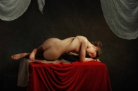 Honour May в спальне.