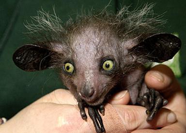 1. Ай-ай (Aye-aye) - Мадагаскарская руконожка — самый крупный представитель ночных приматов. Единственный вид из семейства руконожковых (Daubentoniidae) приматов.